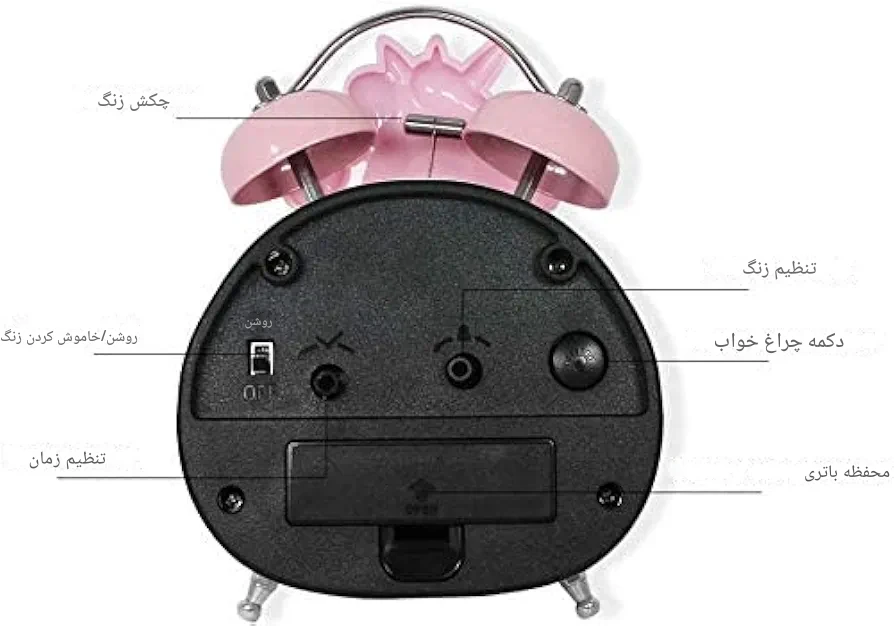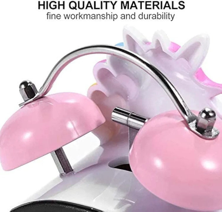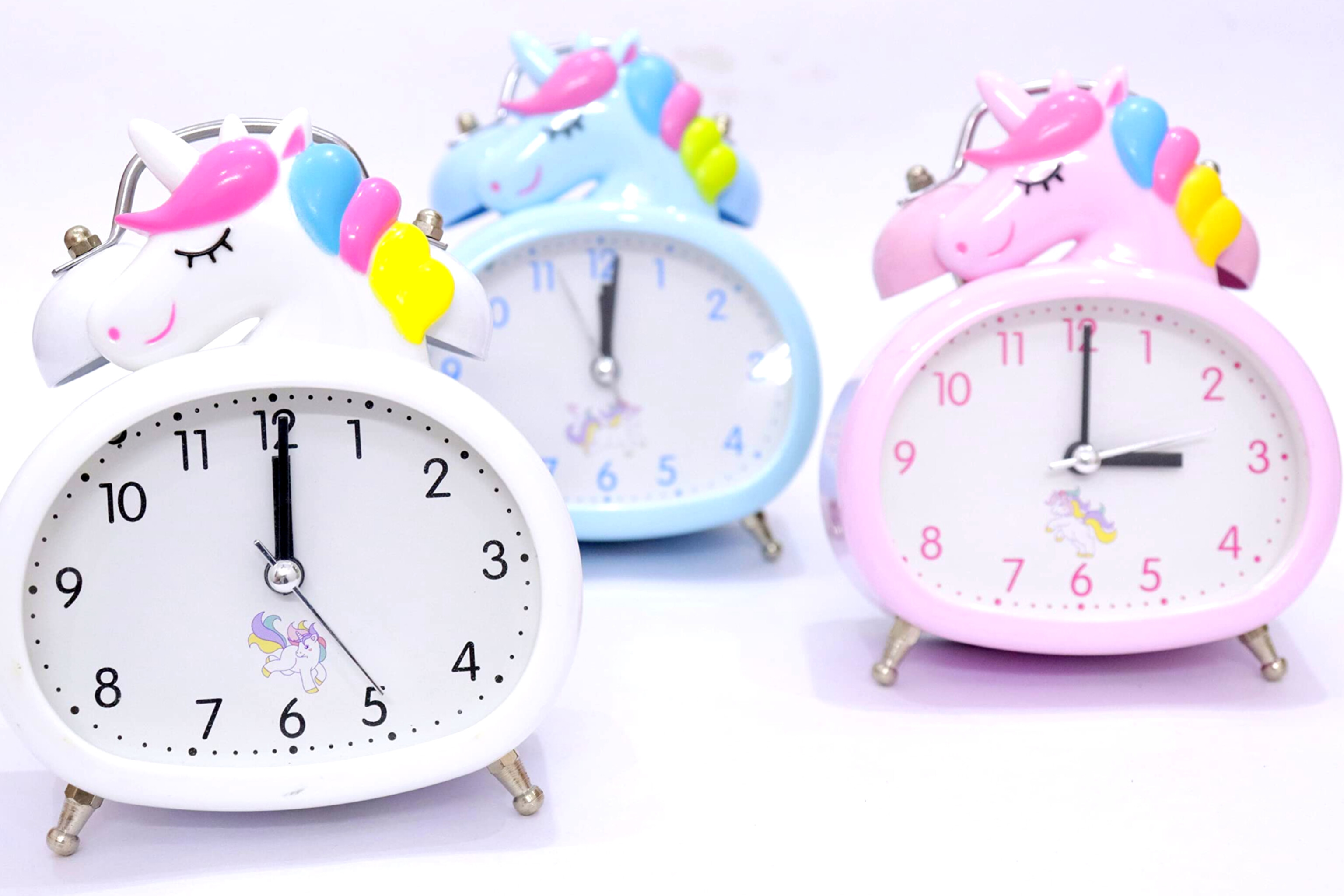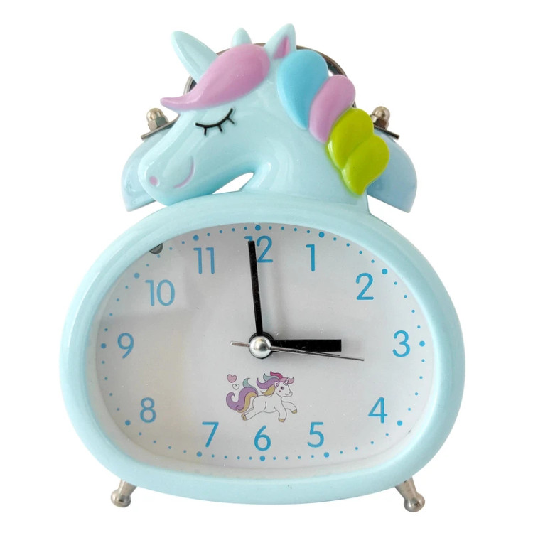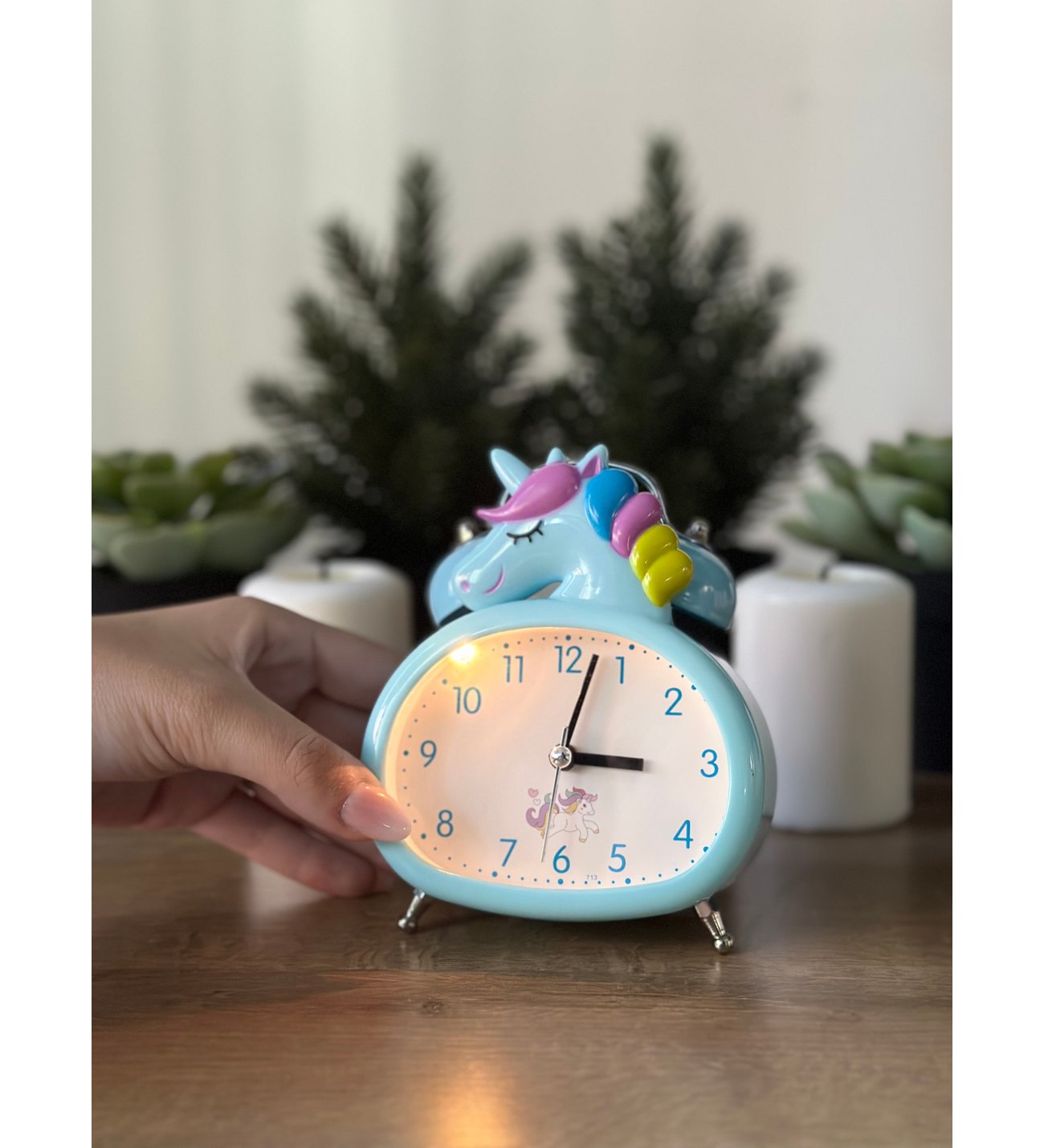 ساعت فلزی رومیزی زنگ‌دار طرح یونیکورن با چراغ – مناسب اتاق خواب و میز کار