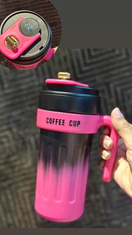 تراول ماگ دسته دار و دماسنج دار استیل ۳۰۴ با حجم ۶۵۰میل