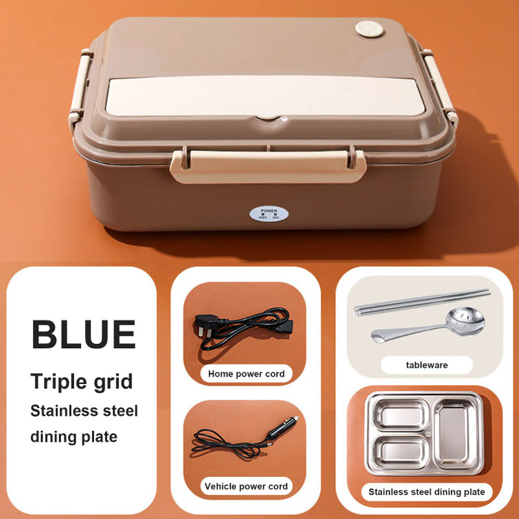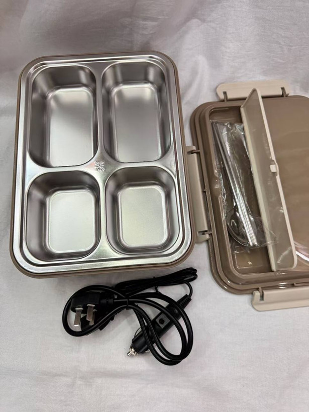 ظرف غذا و لانچ باکس برقی ۱۲۰۰ میلی لیتر ۴ بخشی همراه با کابل برق و کابل فندکی ماشین