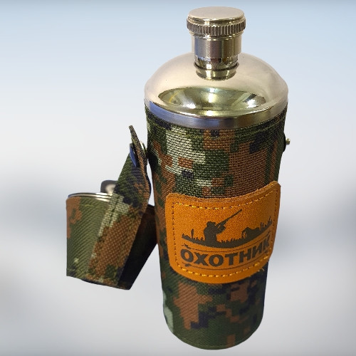 لوگوی دوخته شده با طرح شکارچی و نوشتهی روسی «Охотник» به معنی شکارچی 🦌
