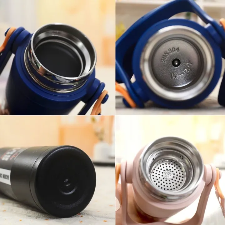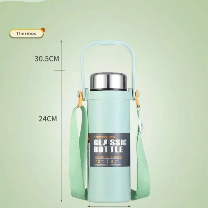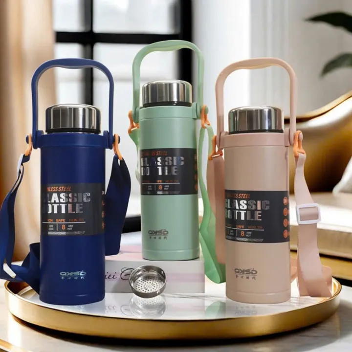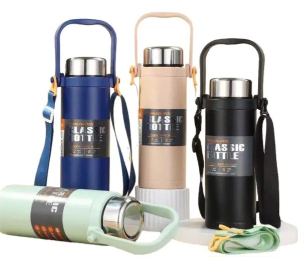 قمقمه استیل دوجداره 800ml – ضدزنگ، عایق حرارتی قوی، همراه با دسته و بند