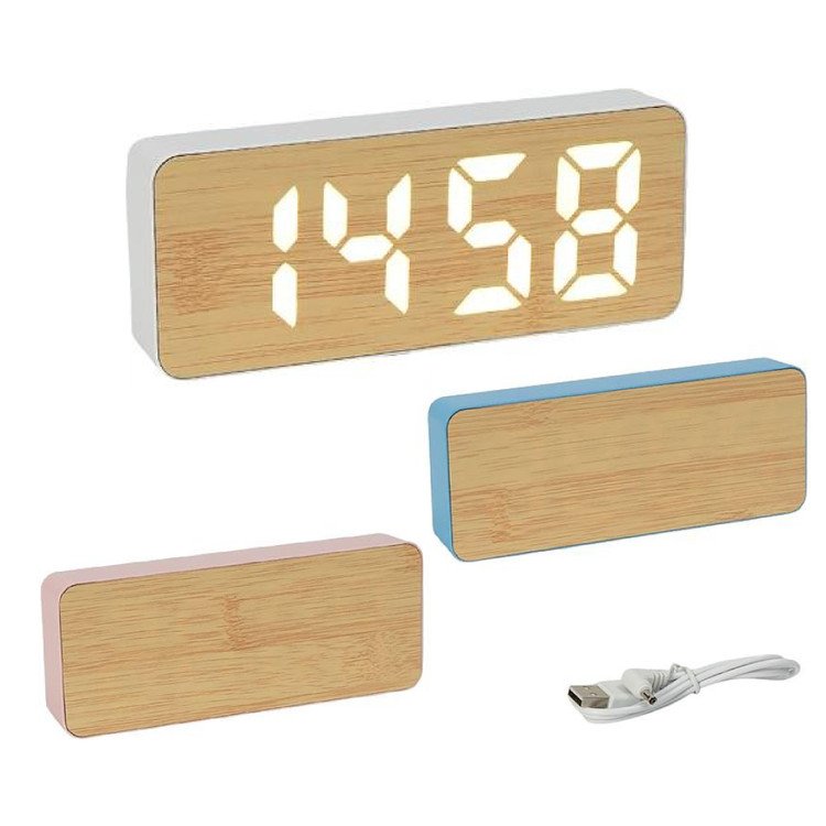ساعت رومیزی دیجیتال طرح چوبی گائوسیو مدل DS-5821L – با روکش بامبو، نمایشگر LED، جمعوجور و کاربردی