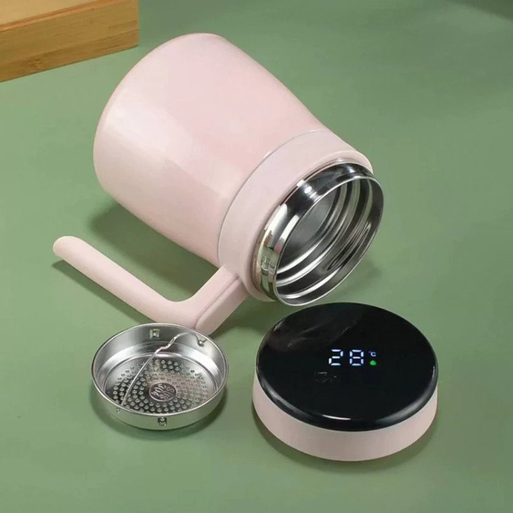 تراول ماگ دستهدار 430 میل با نمایشگر دما و صافی استیل 304 – HOT&COOL