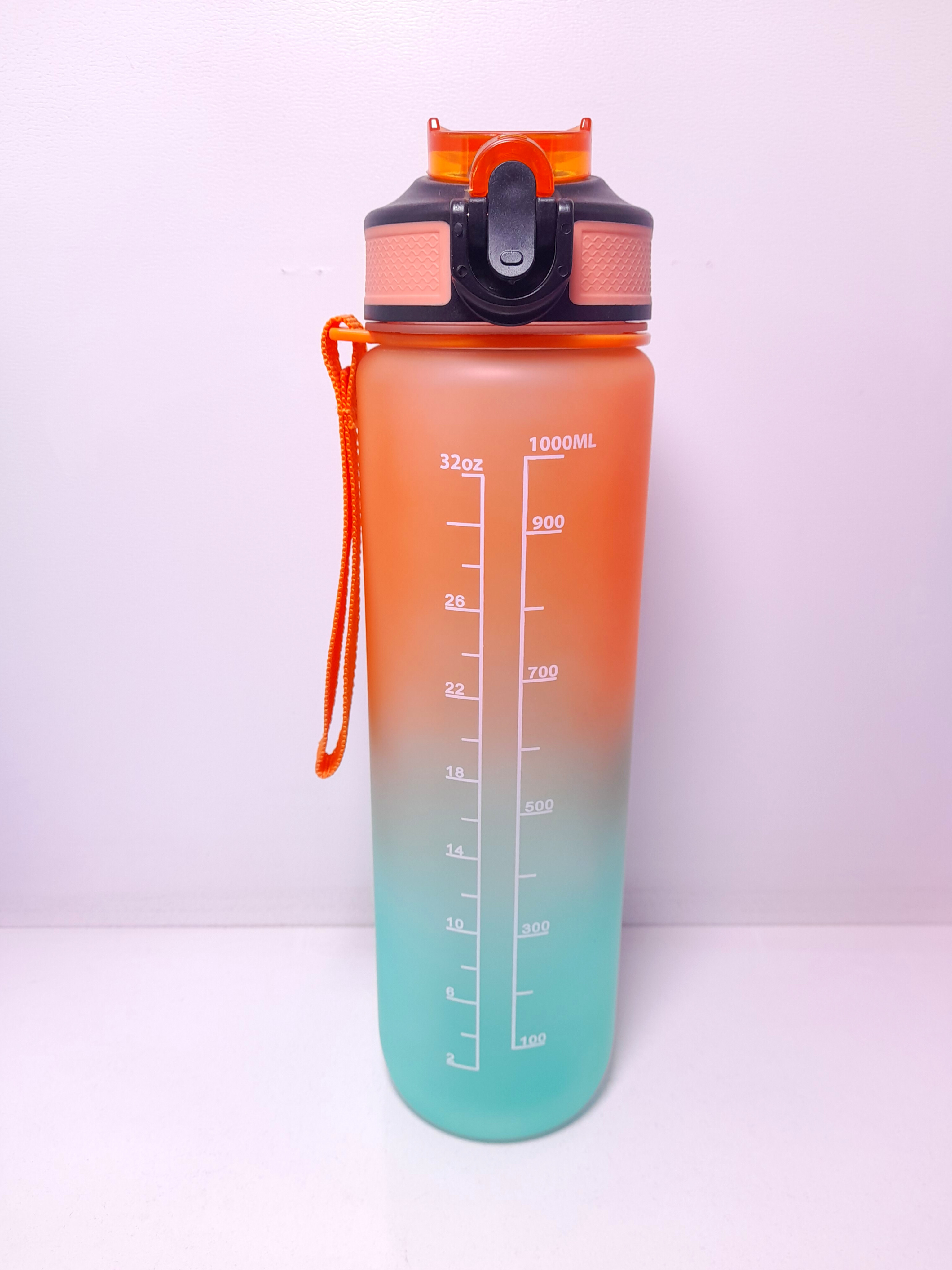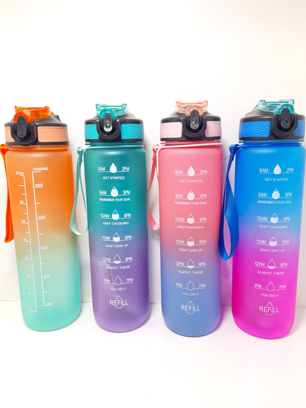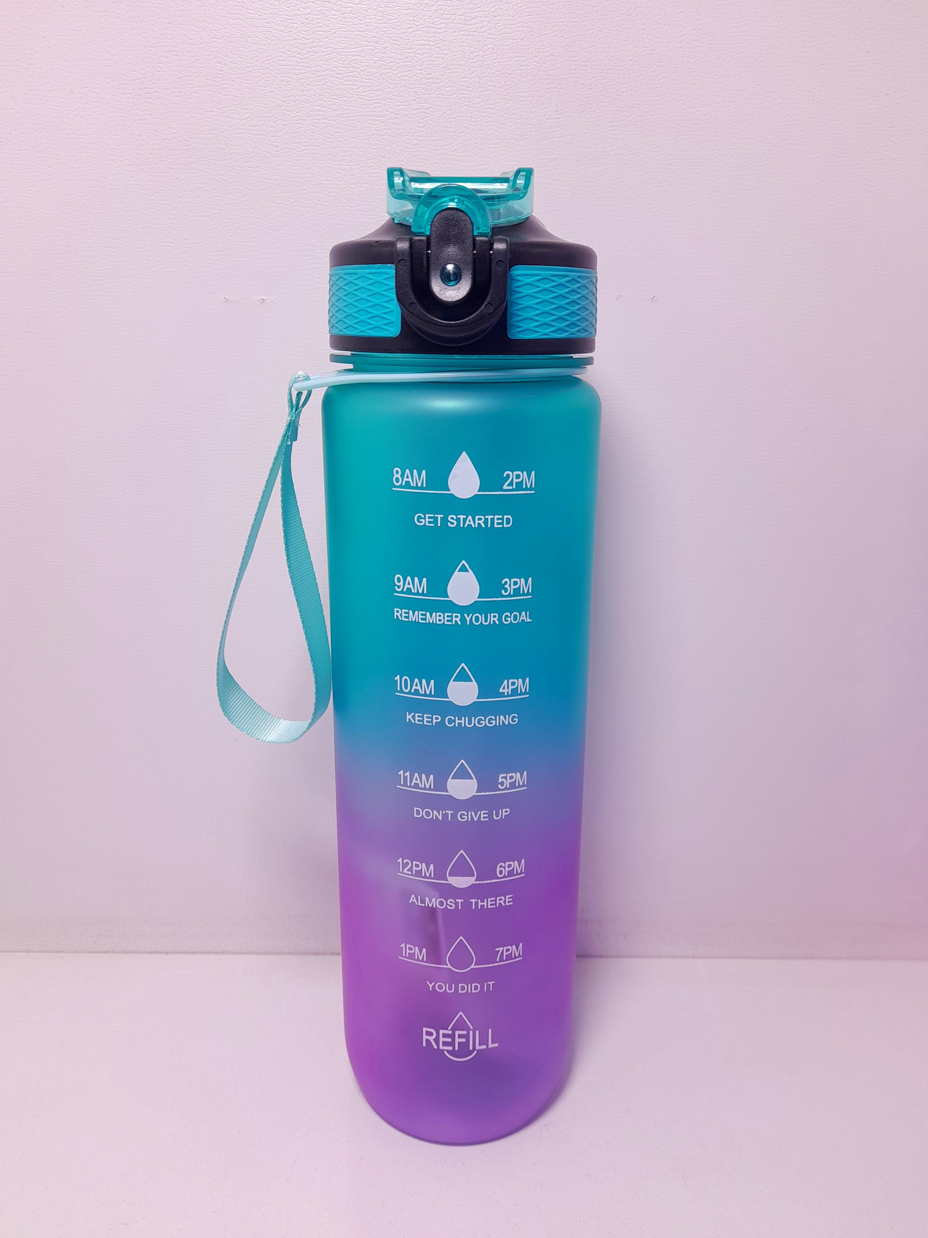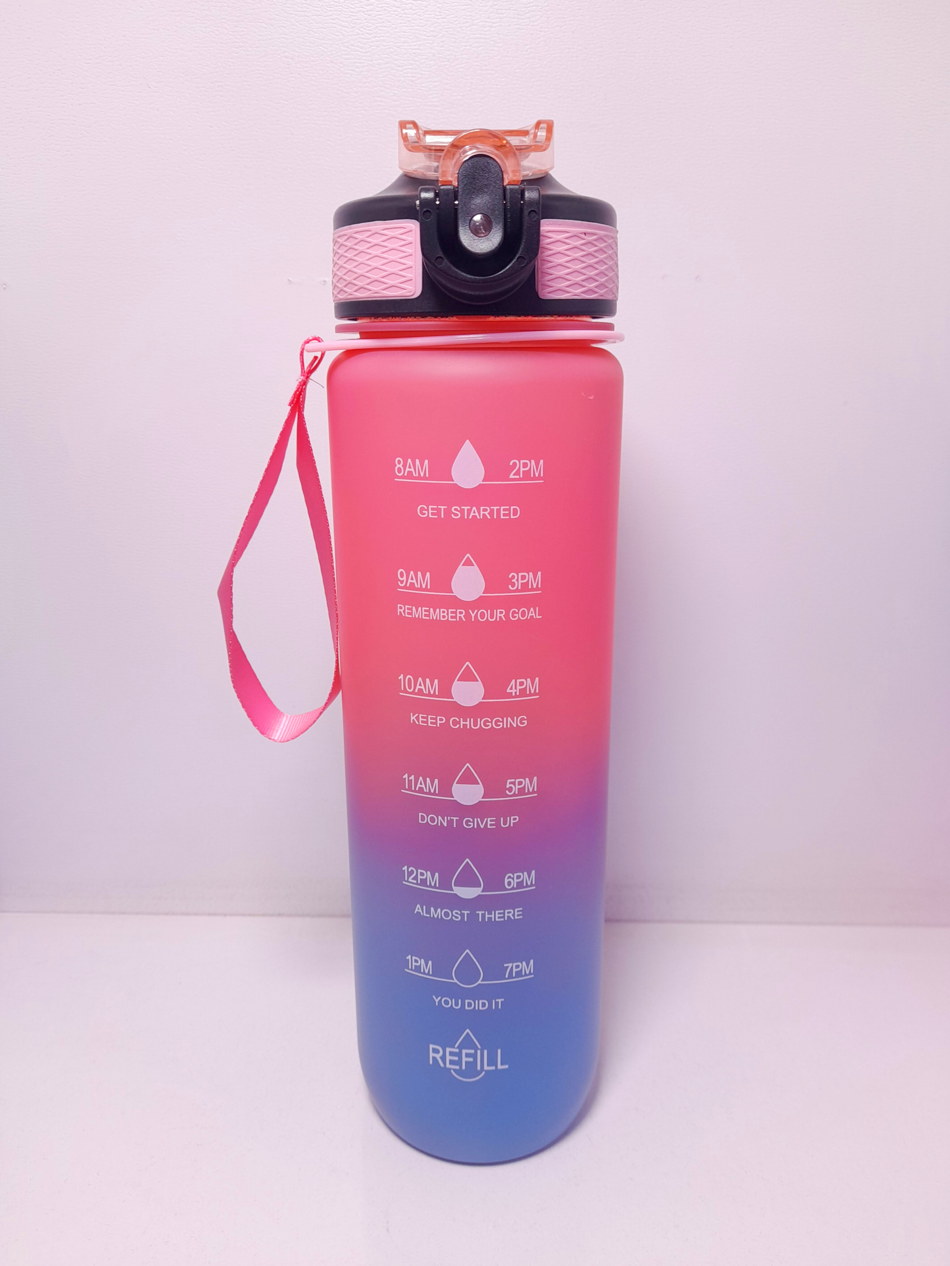 قمقمه یک لیتری تایم‌دار Refill – مدل گرادیانت رنگی با قفل، نی و بند دستی