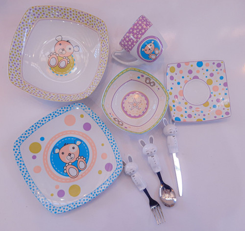 سرویس چینی 5 پارچه غذاخوری کودک برند لورین طرح خرس عروسکی